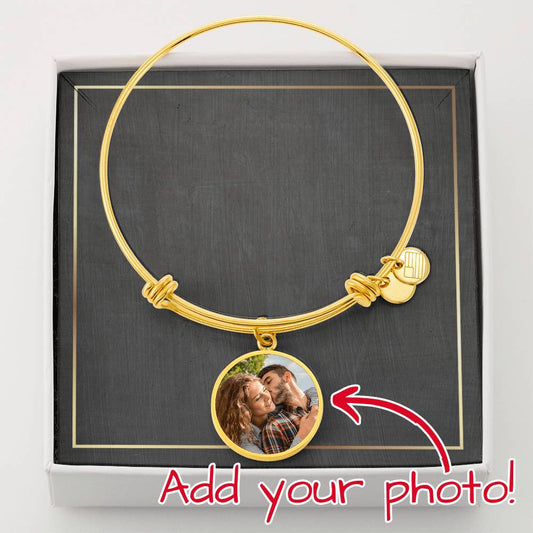 Personalized Bangle Bracelet with Engravable Circle Shaped Photo Charm