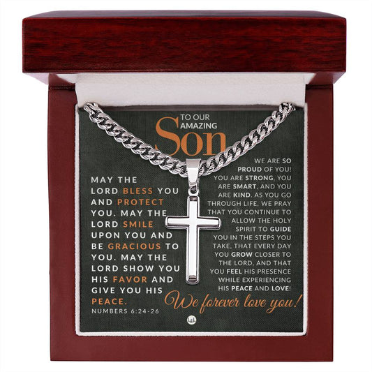 Numbers 6:24-26 - Christian Cross Pendant Necklace - Gift For Our Son