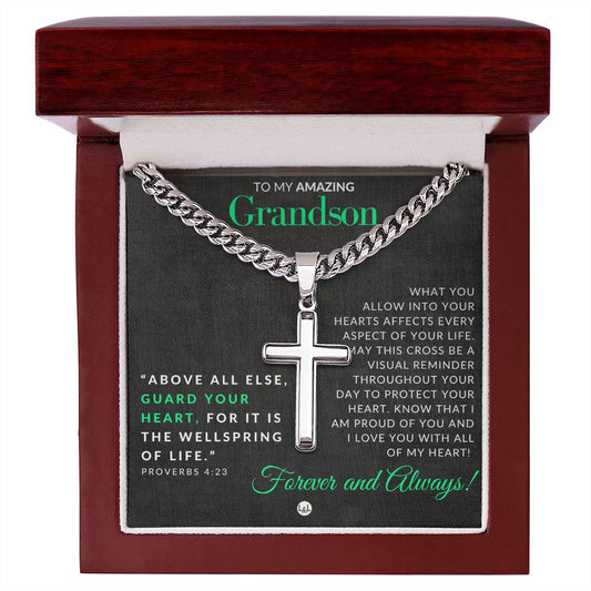 Proverbs 4:23 - Christian Cross Pendant Necklace - Gift For Grandson