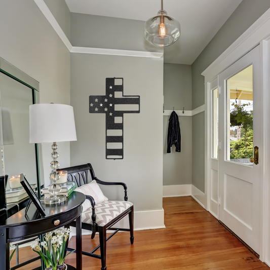 Flag Cross - Custom Metal Sign - USA, Patriotic Sign, 4th of July Wreath, Christian Artwork