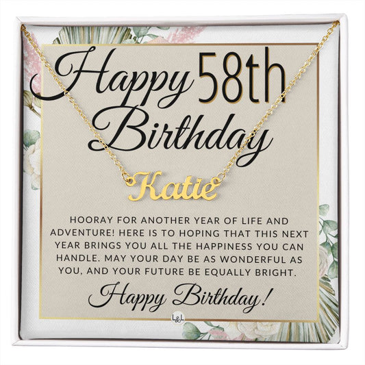 58th Birthday Gift For Her - Name Necklace Gift For A 58 Year Old's Birthday The Perfect Personalized Present