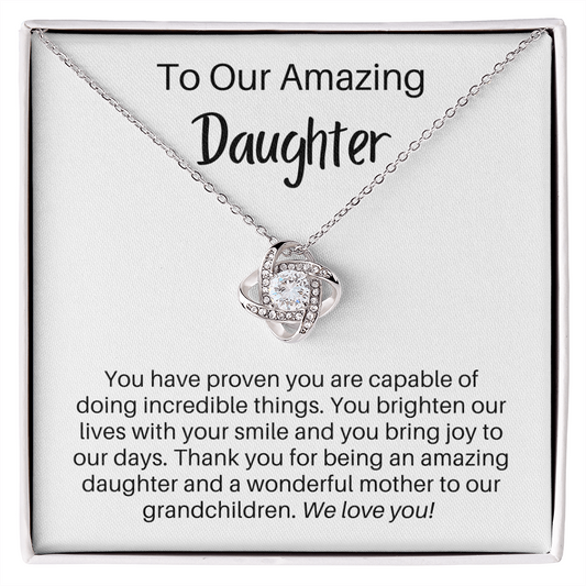 To Our Amazing Daughter, We Love You - Adult Daughter/Mom Gift - Love Knot Pendant Necklace - The Perfect Gift for Your Daughter