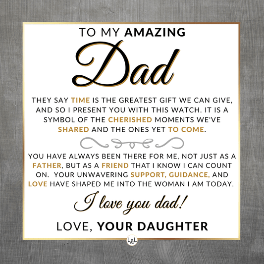 Dad Gift, From His Daughter - Men's Openwork Watch + Box - Thoughtful Father's Day, Christmas or Birthday Gift For Him