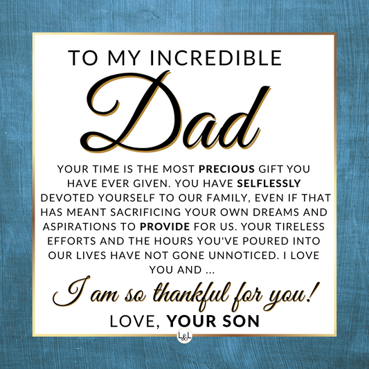 It doesn't matter if this is a personal gift for your biological dad, your bonus dad, second dad, stepdad, foster dad, Godfather, father-in-law, future father-in-law, or simply another strong man in your life who has become a role model for you, he will appreciate your thoughtfulness!