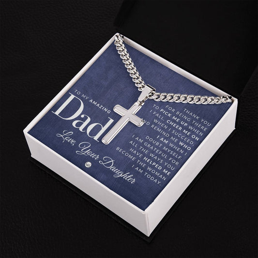 To Dad, From Daughter - Men's Chain with Engravable Cross Necklace - Christian Jewelry For Dad For Father's Day, Christmas or His Birthday
