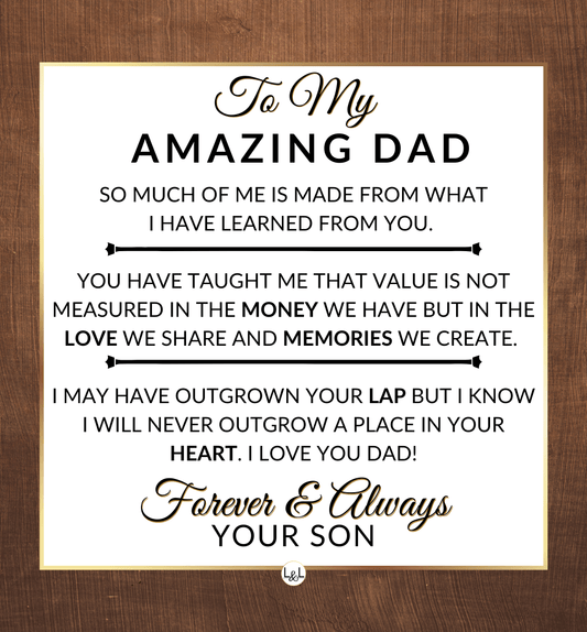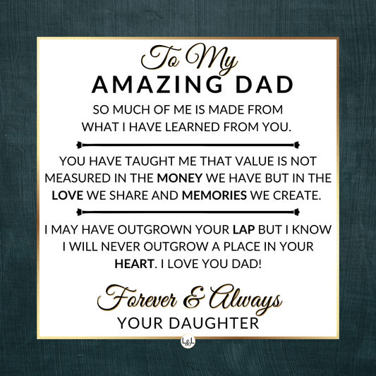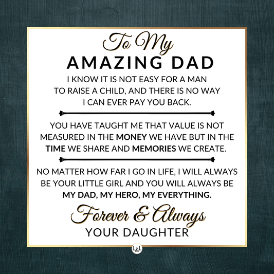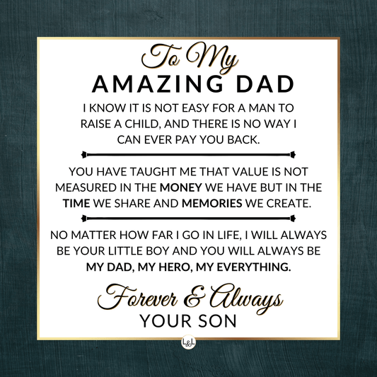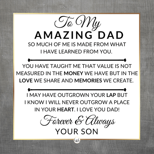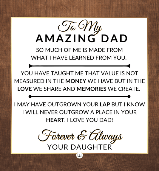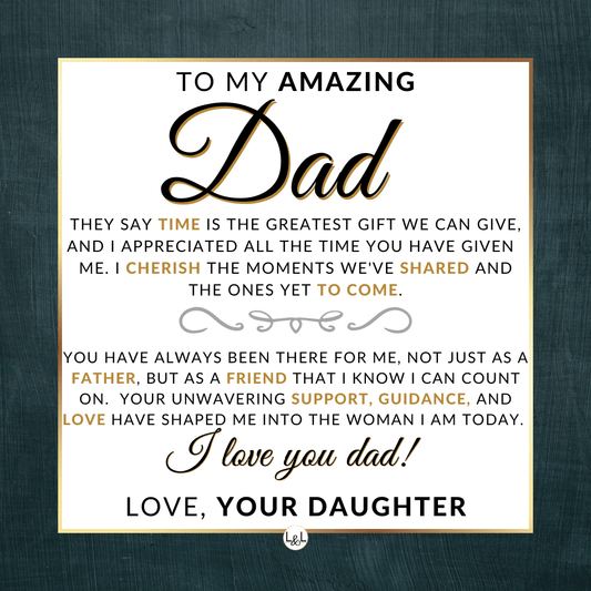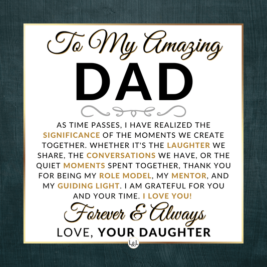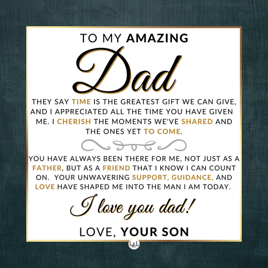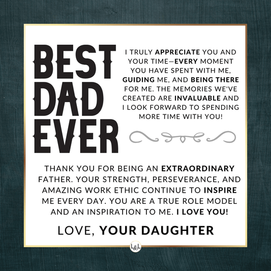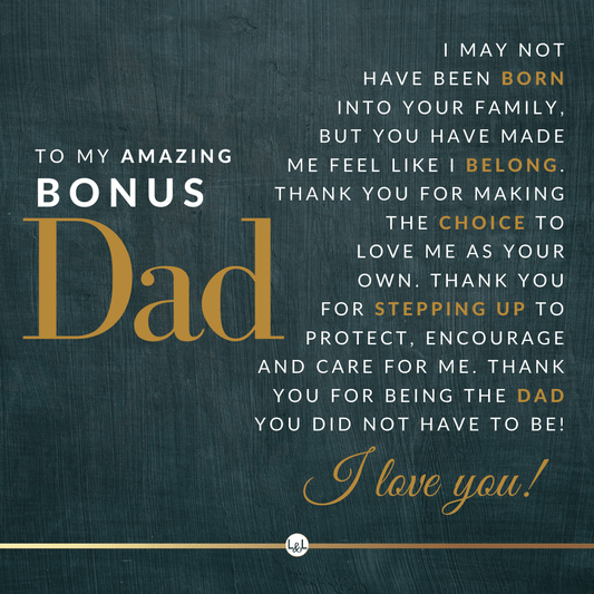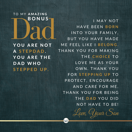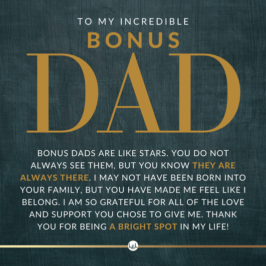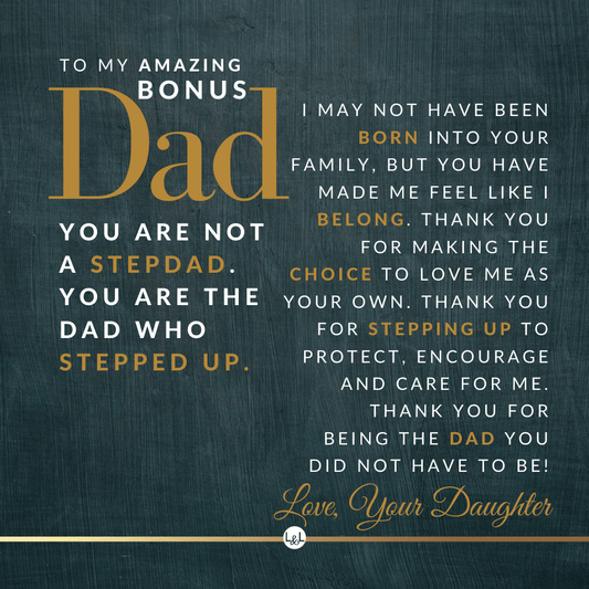 It doesn't matter if this is a personal gift for your biological dad, your bonus dad, second dad, stepdad, foster dad, Godfather, father-in-law, future father-in-law, or simply another strong man in your life who has become a role model for you, he will appreciate your thoughtfulness!