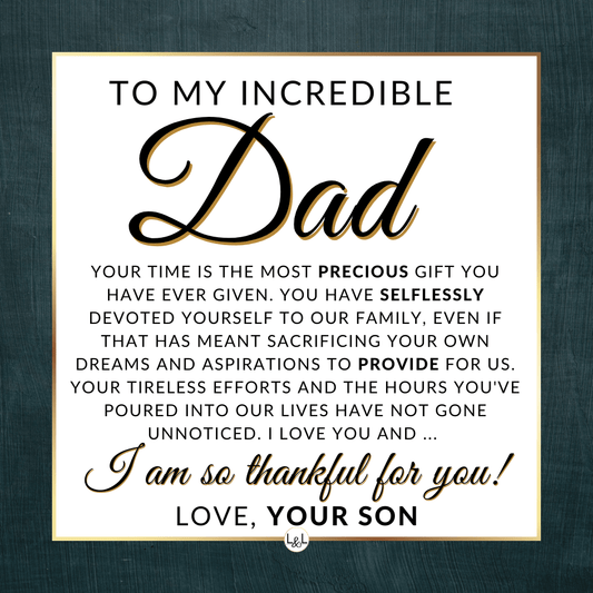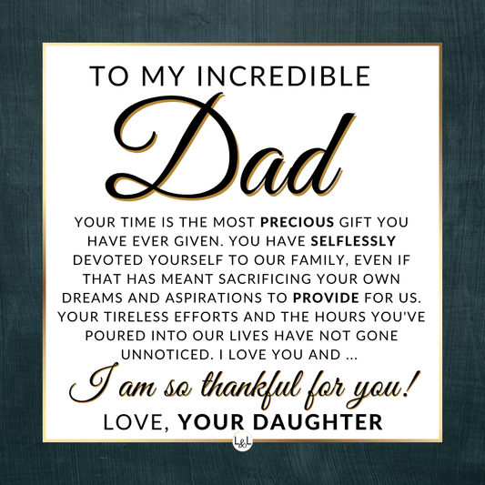 It doesn't matter if this is a personal gift for your biological dad, your bonus dad, second dad, stepdad, foster dad, Godfather, father-in-law, future father-in-law, or simply another strong man in your life who has become a role model for you, he will appreciate your thoughtfulness!