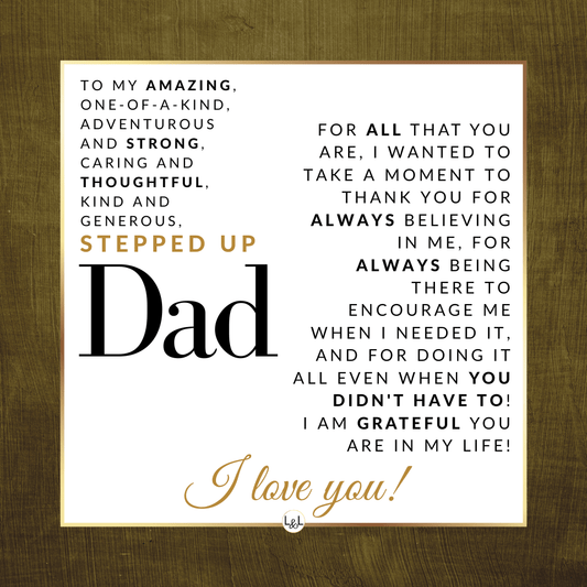 It doesn't matter if this is a personal gift for your biological dad, your bonus dad, second dad, stepdad, foster dad, Godfather, father-in-law, future father-in-law, or simply another strong man in your life who has become a role model for you, he will appreciate your thoughtfulness!