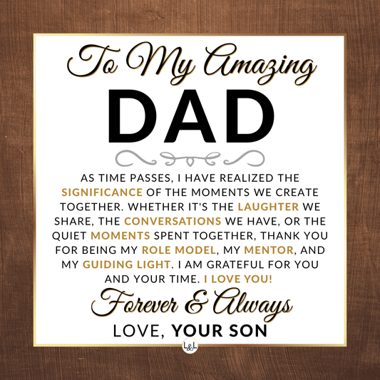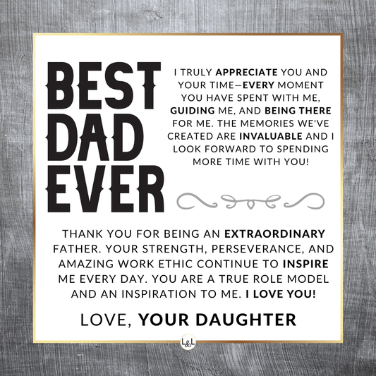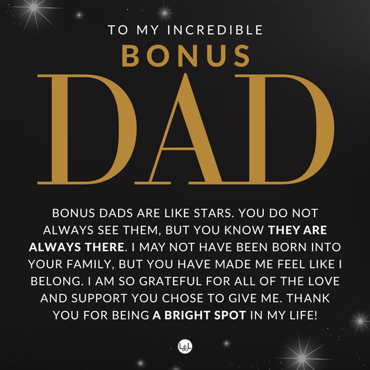 It doesn't matter if this is a personal gift for your biological dad, your bonus dad, second dad, stepdad, foster dad, Godfather, father-in-law, future father-in-law, or simply another strong man in your life who has become a role model for you, he will appreciate your thoughtfulness!