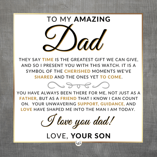 Dad Gift, From His Son - Men's Openwork Watch + Box - Thoughtful Father's Day, Christmas or Birthday Gift For Him