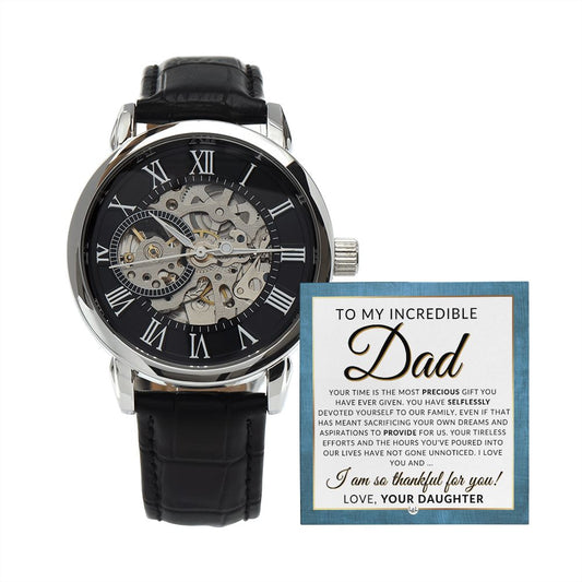 Dad Gift, From Daughter - Men's Openwork Watch + Box - Thoughtful Father's Day, Christmas or Birthday Gift For Him