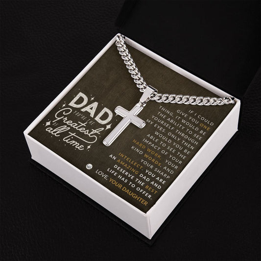 Perfect Gift For Dad, From Daughter - Men's Chain with Engravable Cross Necklace - Christian Jewelry For Dad For Father's Day, Christmas or His Birthday
