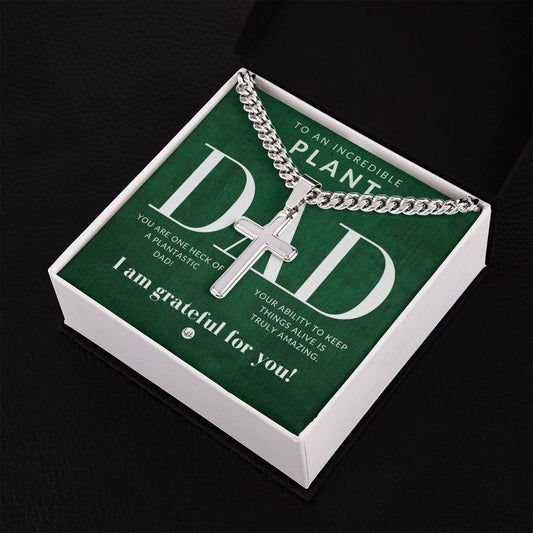 Plant Dad Gift - Men's Chain with Engravable Cross Necklace - Christian Jewelry For Dad For Father's Day, Christmas or His Birthday