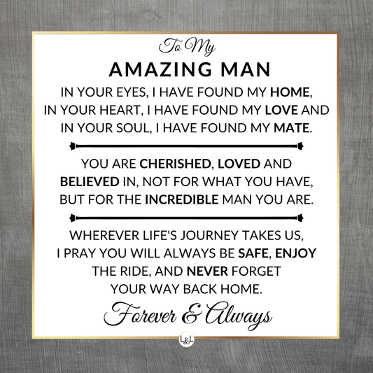 Gift For My Man - For An Incredible Man - Men's Braided Leather Bracelet - Great As A Christmas Gift or A Birthday Present For Him