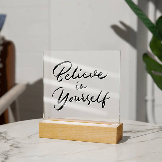 Believe In Yourself - Motivational Acrylic with LED Nigh Light - Inspirational New Home Decor - Encouragement, Birthday or Christmas Gift