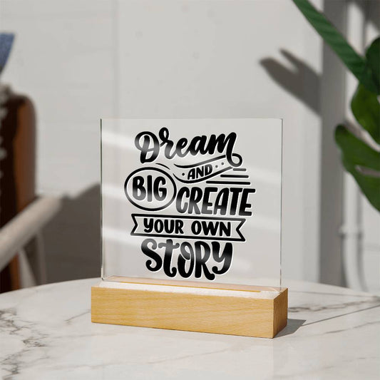 Dream Big And Create - Motivational Acrylic with LED Nigh Light - Inspirational New Home Decor - Encouragement, Birthday or Christmas Gift