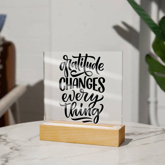 Gratitude Changes Everything - Motivational Acrylic with LED Nigh Light - Inspirational New Home Decor - Encouragement, Birthday or Christmas Gift