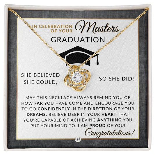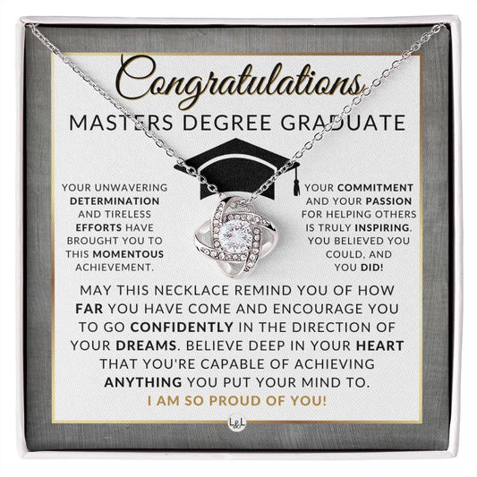 Master's Degree Grad Gift For Her - Beautiful Necklace + Heartfelt Graduation Message - Masters Program Graduation