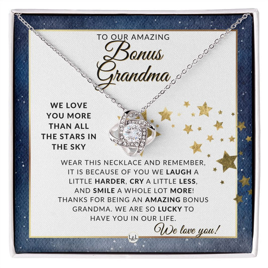 Our Bonus Grandma Gift - Meaningful Necklace - Great For Mother's Day, Christmas, Her Birthday, Or As An Encouragement Gift