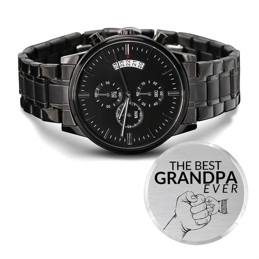 Gift For Grandpa - Best Grandpa Ever - Engraved Black Chronograph Men's Watch + Watch Box - Perfect Birthday Present or Christmas Gift For Him