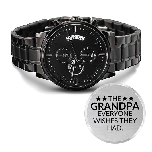Gift For Grandpa -Everyone Wishes They Had - Engraved Black Chronograph Men's Watch + Watch Box - Perfect Birthday Present or Christmas Gift For Him