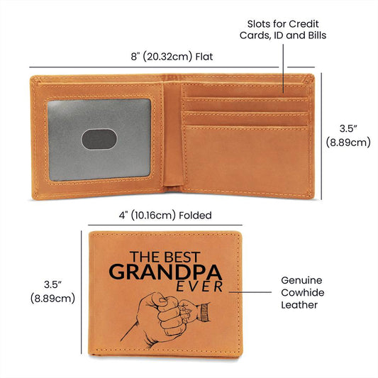 Gift For Grandpa - Best Grandpa Ever - Men's Custom Bi-fold Leather Wallet - Great Christmas Gift or Birthday Present Idea