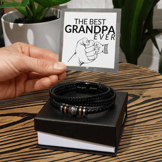 Gift For Grandpa - Best Grandpa Ever - Men's Braided Leather Bracelet - Great As A Christmas Gift or A Birthday Present For Him