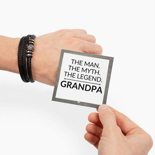 Gift For Grandpa - The Man. The Myth. The Legend. - Men's Braided Leather Bracelet - Great As A Christmas Gift or A Birthday Present For Him