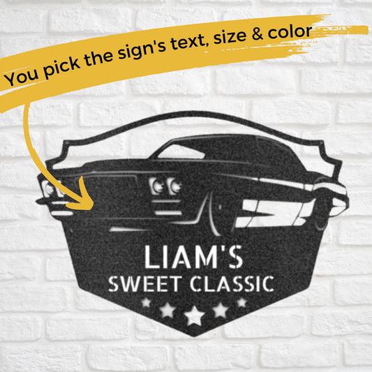 Classic Car Sign, Personalized Metal Wall Art, Classic Muscle Car, Custom Metal Wall Sign, Antique Classics, Garage Sign, Gift for Him