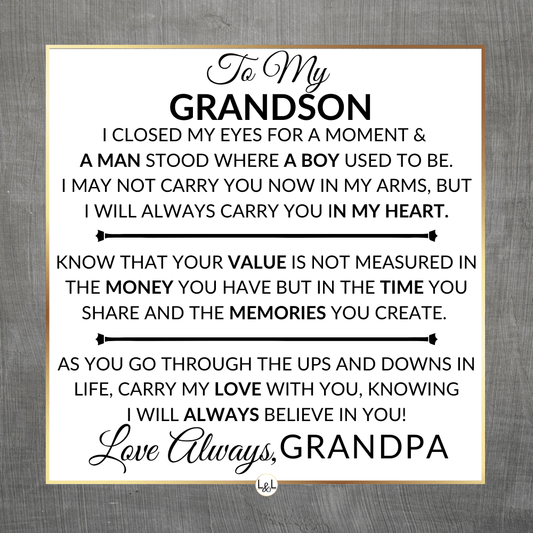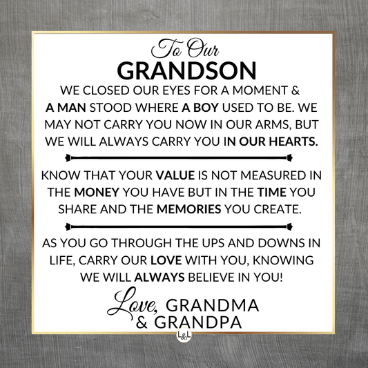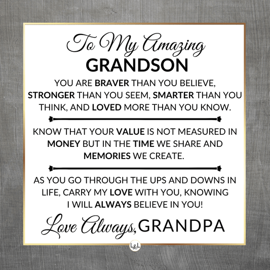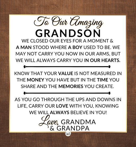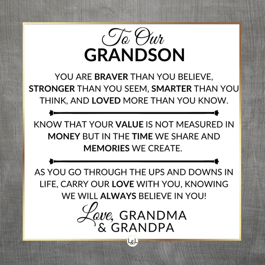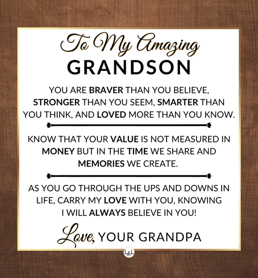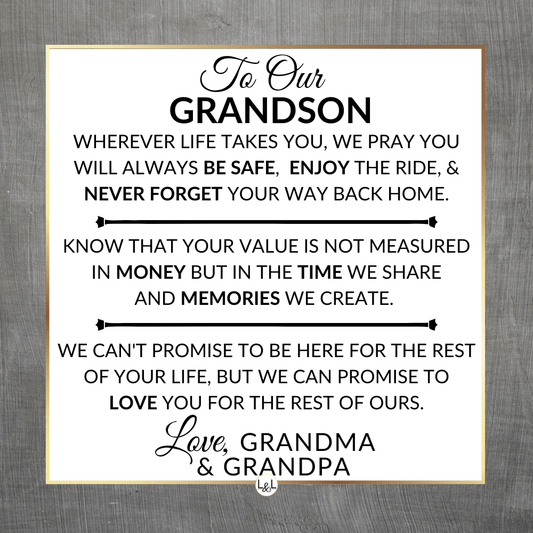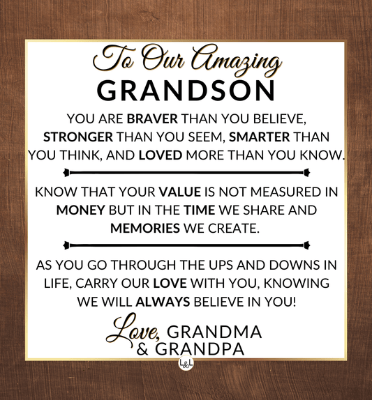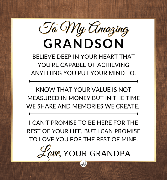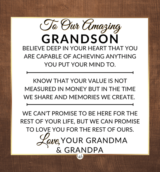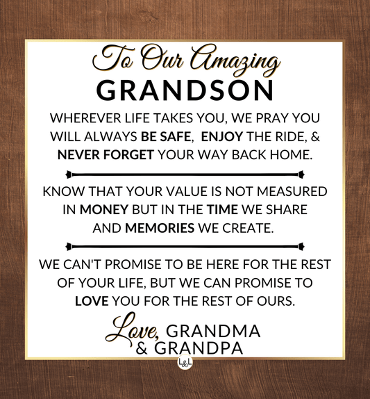 You lucked out with one heck of a grandson! Celebrate the boundless joy and love that grandsons bring into our lives with our thoughtfully curated collection of gifts. Whether it's Christmas, his birthday, a milestone like graduation, or simply a gesture to show your affection, our assortment of grandson gifts is designed to honor the special connection that spans generations.