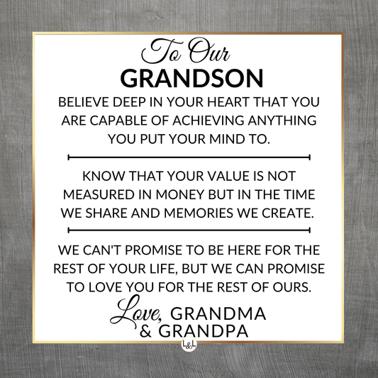 At Liliana and Liam, we understand the significance of grandparent-grandchild relationships. Explore a diverse range of unique and meaningful presents that capture the spirit of your relationship. Shop now to find the perfect present that will bring a smile to your grandson's face.