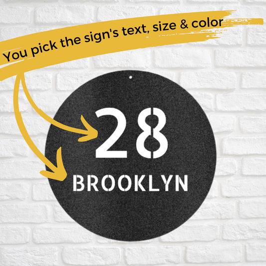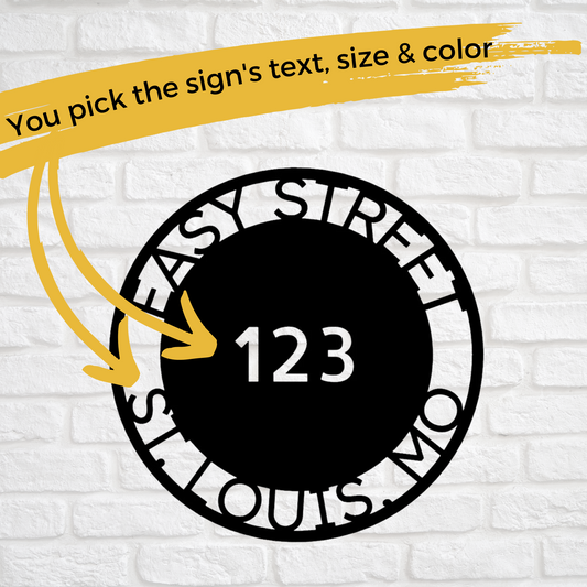 Personalized Metal Address Sign, Large Number Circle, Street Address Sign, Street Name Sign, Great Gift for Newlyweds or New Homeowners, Porch Sign