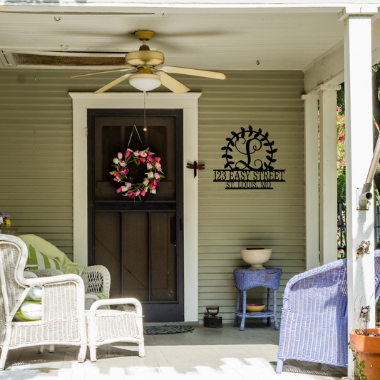 Personalized Metal Address Sign, Large Initial, Street Address Sign, Street Name Sign, Great Gift for Newlyweds or New Homeowners, Custom Porch Sign