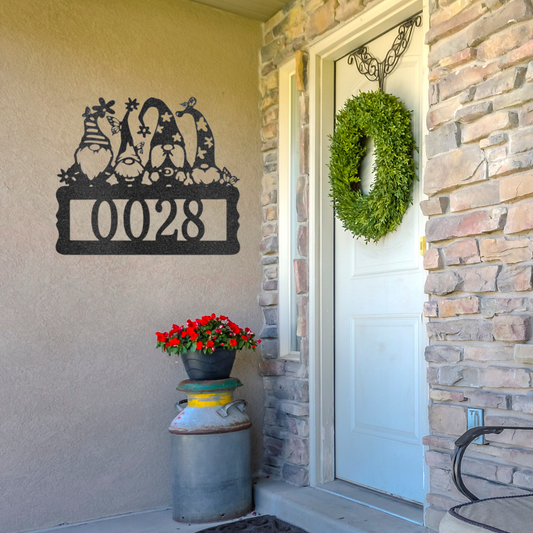 Gnome Address Sign - House Number Sign, Address numbers, Gnome Address Plaque, Metal Address Sign
