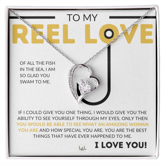 To My Reel Love - Fishing Partner Necklace for Your Wife, Fiancée, or Girlfriend - Fishing Gift for Her from A Man Who Loves Fishing - Christmas, Valentine's, Birthday or Anniversary Gifts