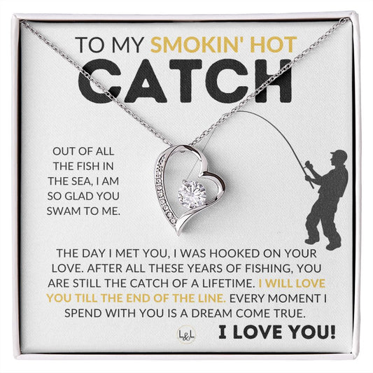 My Smokin Hot Catch - Fishing Partner Necklace for Your Wife, Fiancée, or Girlfriend - Fishing Gift for Her from A Man Who Loves Fishing - Christmas, Valentine's, Birthday or Anniversary Gifts