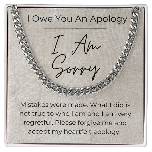 I Am Sorry - Apology Gift for a Guy - Linked Chain Necklace
