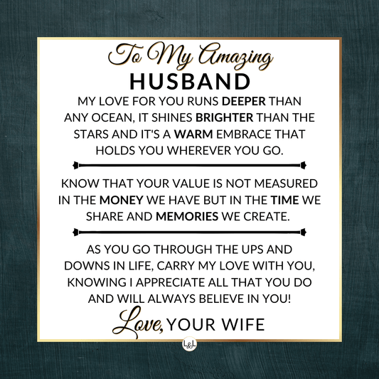Celebrate your amazing husband with our curated collection of sentimental and meaningful gifts. Whether it's Christmas, his birthday, an anniversary, or a gesture to show your appreciation, our assortment of husband gifts is designed to make him feel cherished and valued.