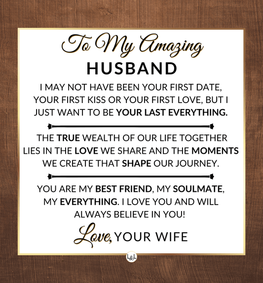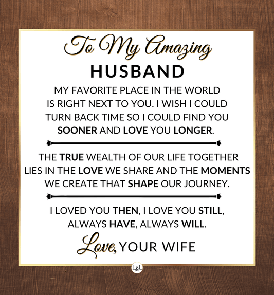 Browse our selection now to discover the ideal gift that honors your husband's uniqueness and the love you both cherish. With Liliana and Liam, celebrating the joy and partnership of your relationship has never been more meaningful.
