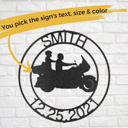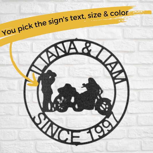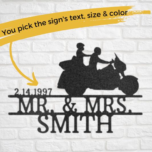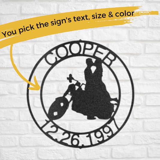 Motorcycle Sign - Laser Cut Metal Sign - Biker Couple