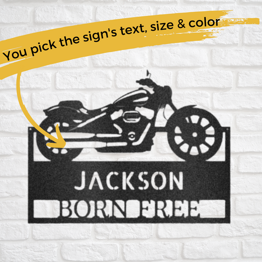 Motorcycle Sign - Personalized Metal Sign - Cruiser Monogram with a Wrench