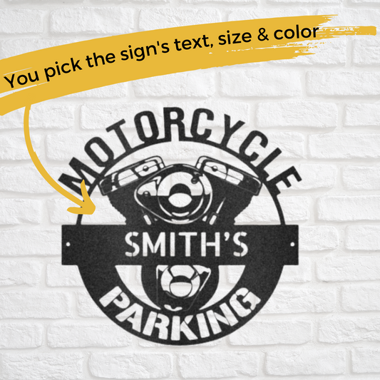Motorcycle Sign - Personalized Metal Sign - Motorcycle Parking Monogram with Engine