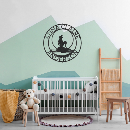 Mermaid Round Laser Cut Metal Sign - Custom Mermaid Decor, Kids Door Sign, Mermaid Room Decor, Nursery Decor
