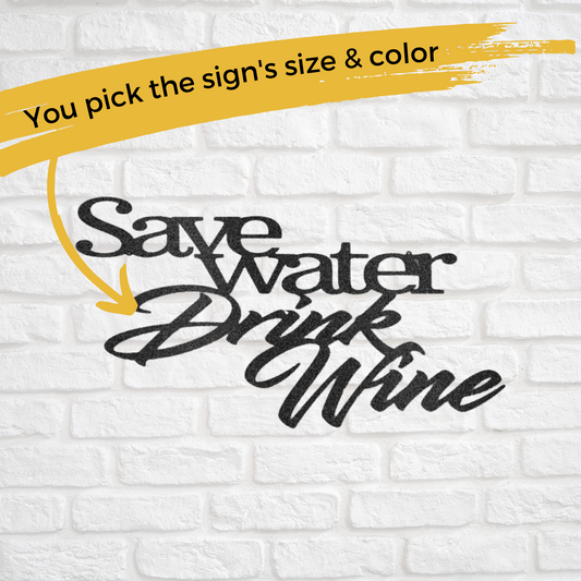 "Save Water Drink Wine" Quote, Metal Sign, Farmhouse Sign, Rustic Home Decor, Signs for Home