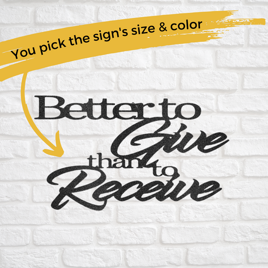 "Better to Give", Custom Metal Word Sign, Rustic Metal Sign, Farmhouse Decor, Housewarming Gift, Metal Wall Art, Christian Word Art