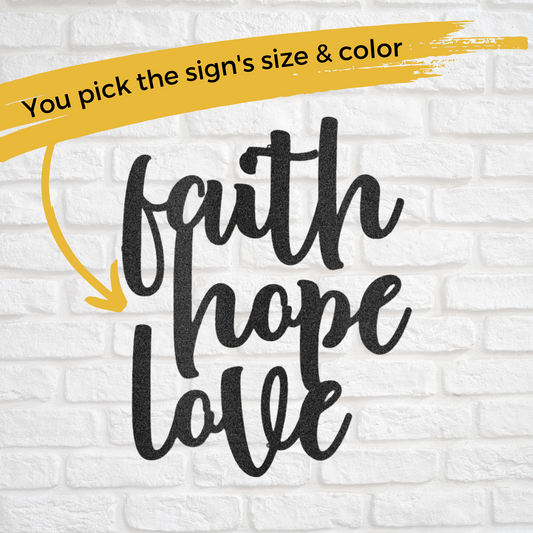 Faith Hope Love - Custom Metal Sign - Christian Metal Wall Art, Christian Artwork