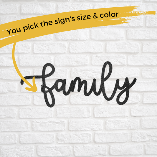 "Family" Script, Metal Word Sign, Rustic Metal Sign, Farmhouse Decor, Housewarming Gift, Metal Wall Art, Family Word Art