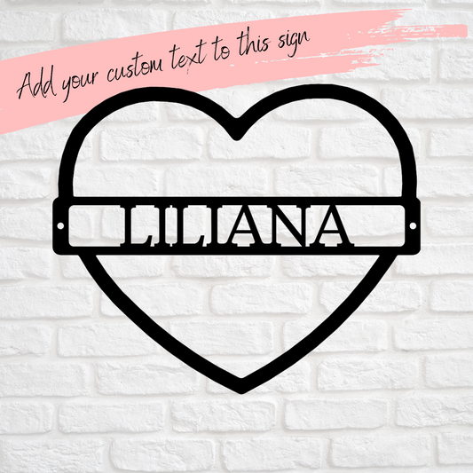 Personalized Metal Heart Sign with Banner, Great Gift for Mom or Decoration for Nursery, Custom Made Home Decor, Metal Wall Art