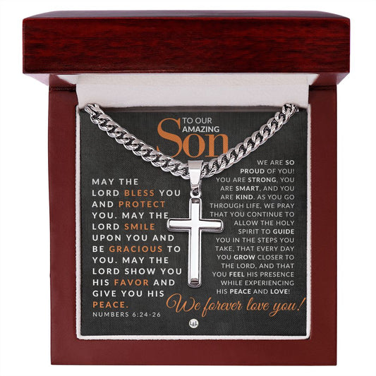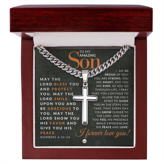 Numbers 6:24-26 - Christian Cross Pendant Necklace - Gift For Son
