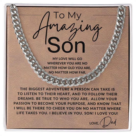Gift For Our Son - Boy, Teen, or Men's Chain with Cross Necklace - Christian Jewelry For Your Son For Christmas, His Birthday, His Baptism or Confirmation